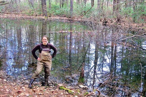 Once they have some promising candidates identified, they’ll move into small field trials at Cornell’s experimental pond facility, where there are wetlands that can be manipulated. By moving outside of the jars, the team will assess how variables like native plants and microbes interact with these amendments. Cornell’s experimental wetlands are human-made shallow depressions that can be divided up into a grid of side-by-side experiment plots to test the effect of different conditions. One day, Holgerson hopes to test amendments in real-world settings, such as degraded or restored wetlands which may not be functioning as well as they could be.